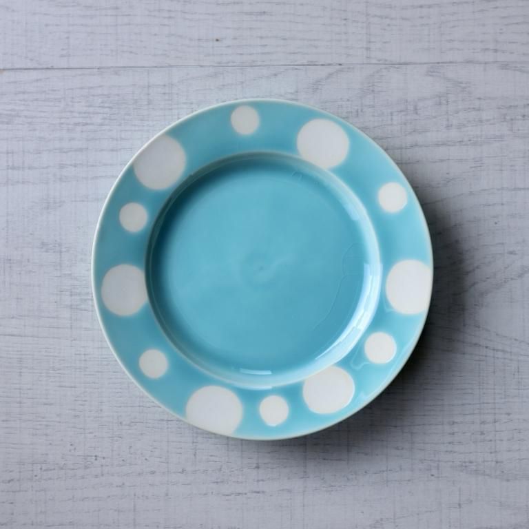 こちら水色の釉薬はガラス質のうわぐすりの表面に貫入と呼ばれるヒビが見えます。